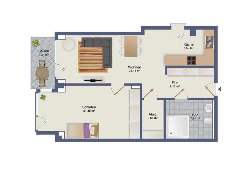 In der kleinen und dennoch geräumigen Wohnung im Obergeschoss trifft „Ursprüngliches auf Neues“. Teilweise hohe Raumdecken geben der Wohnung ihren besonderen Charme. Geniessen Sie im Sommer auf dem Balkon die aufgehende Sonne. Die Wohnung verfügt selbstverständlich über ein barrierefreies, großes Bad mit bodengleicher Dusche. Der im Objekt vorhandene Fahrstuhl fährt Sie bequem vom Obergeschoss ins Kellergeschoss zu Ihrem Mieterkeller oder dem gemeinsamen Waschkeller. Wohn- und Kochbereich sind offen gestaltet.